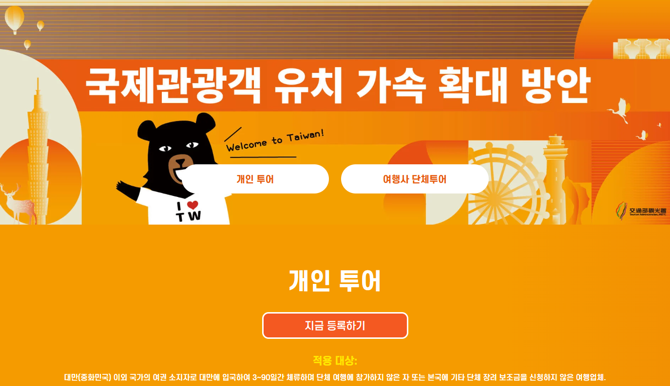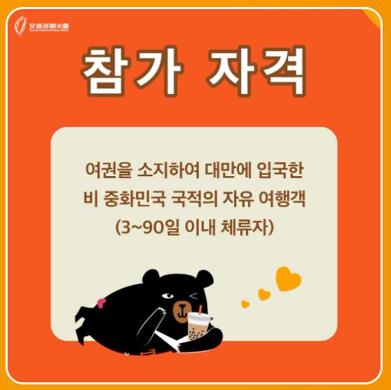 • 3~90일간 대만에 체류하는 자유여행객(단체 여행객 제외)