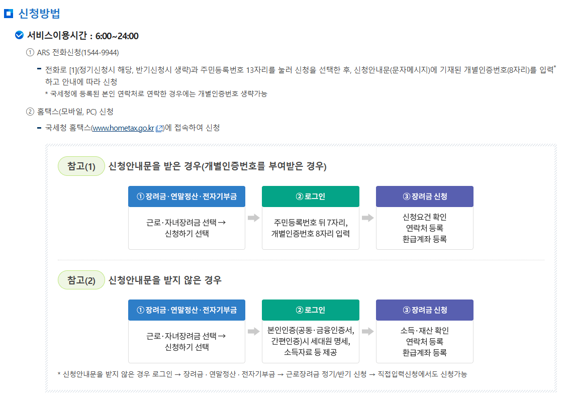 🔹 국세청 장려금 전용 상담센터 1544-9944로 신청 가능
