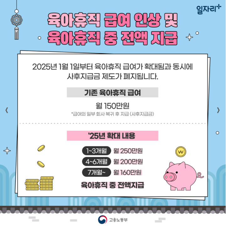 2025년부터 육아휴직 급여의 상한액이 대폭 인상됩니다.