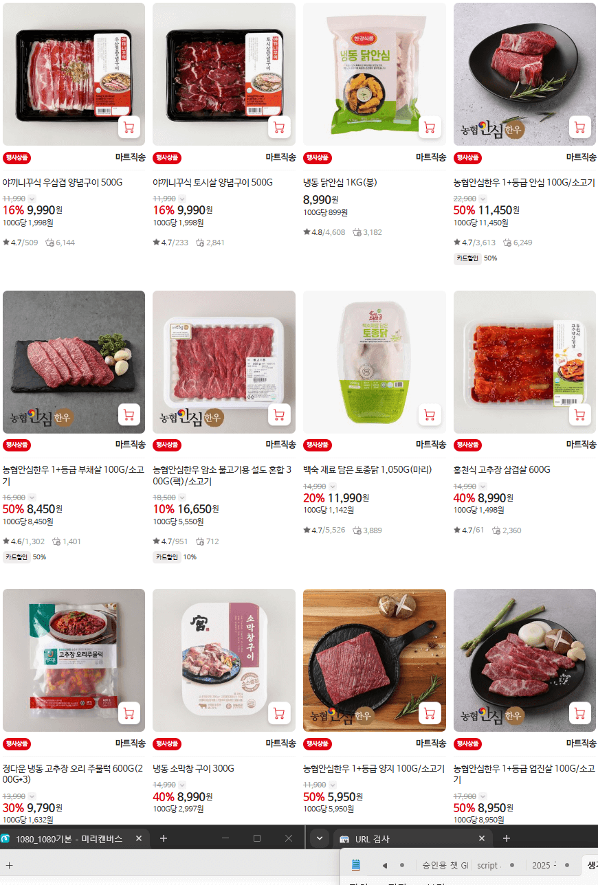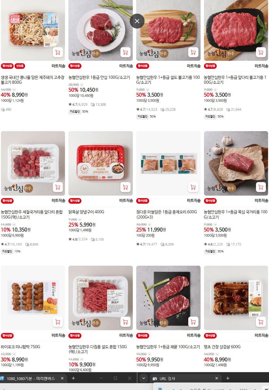 - 국내산 한우고기: 다양한 부위의 한우를 특별 할인가에 제공