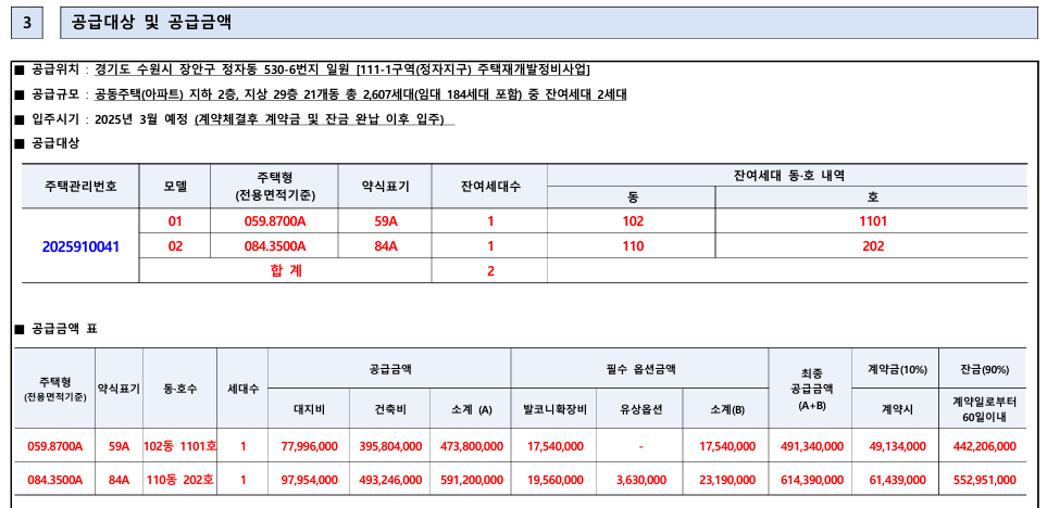 📌 공급 세대 및 분양가 (총 잔여 2세대)