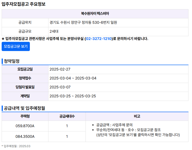 - 청약 접수: 2025년 3월 4일 (화) 오전 9시 ~ 오후 5시 30분 (청약홈에서 인터넷 신청)