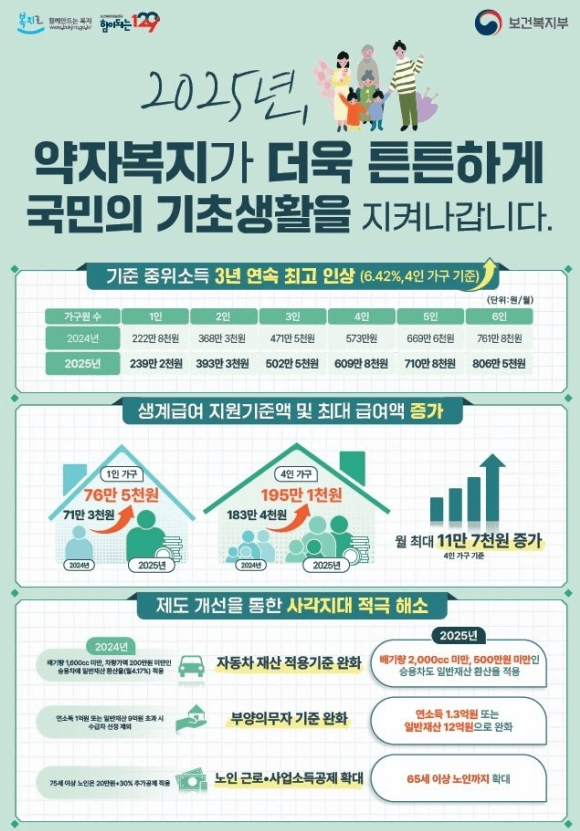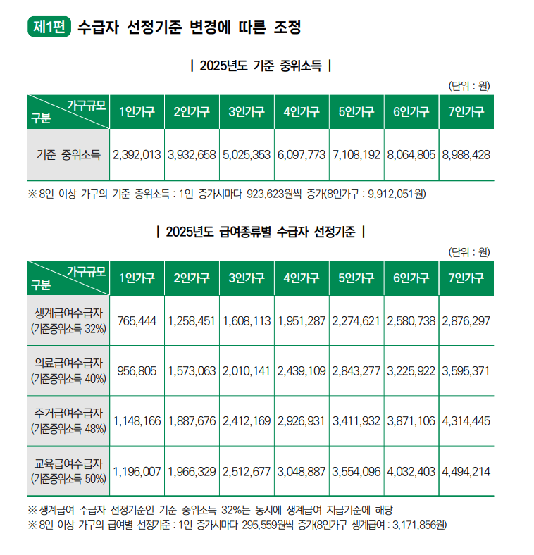 • 2025년 기준 중위소득 및 생계급여 선정 기준