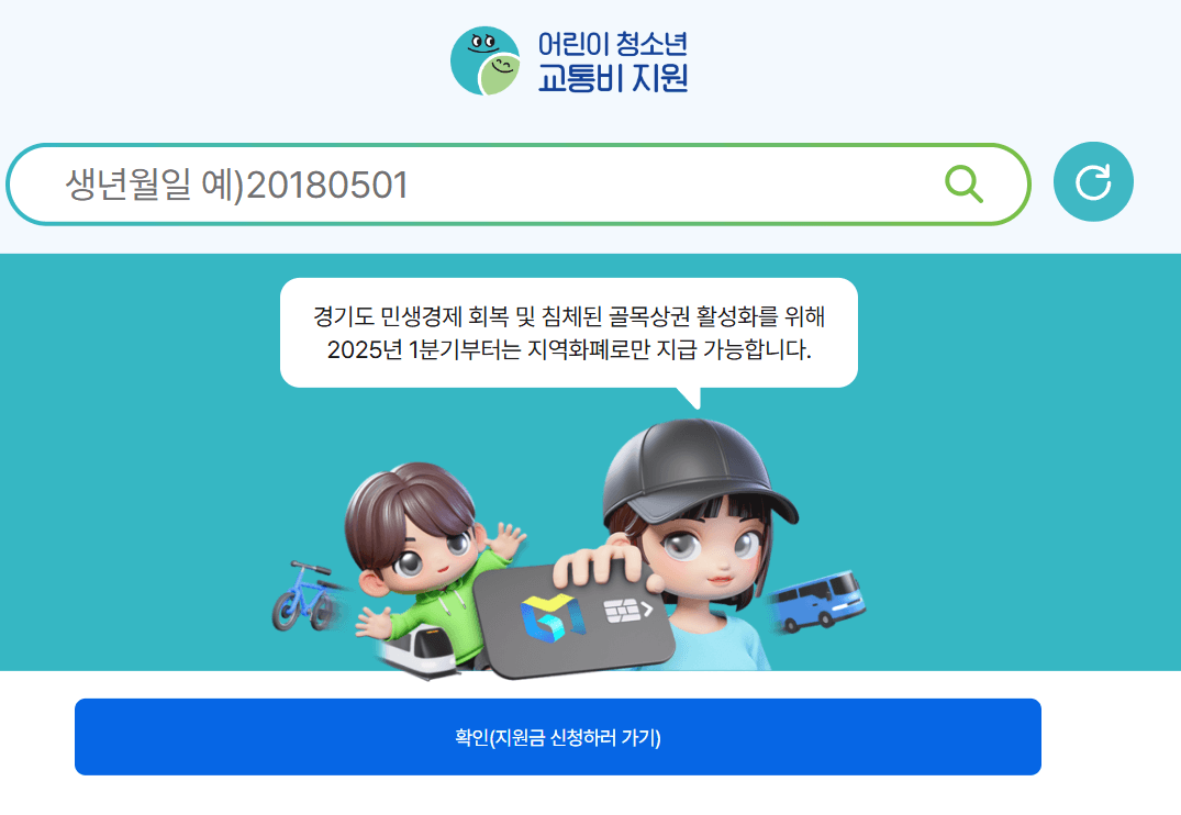 📍 신청 사이트 : 경기도 어린이 교통비 지원 플랫폼 홈페이지
