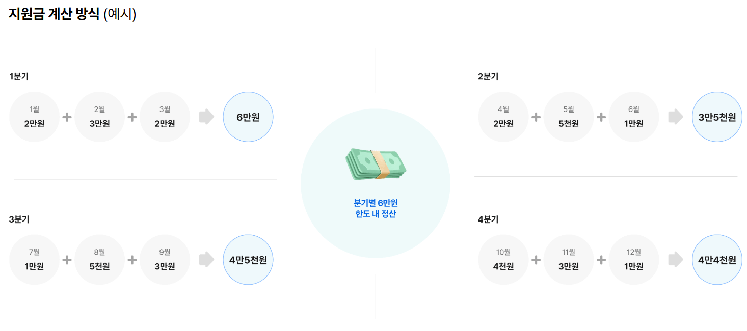 - 분기별 정산 후 지급되므로 기한 내 신청하지 않으면 지원받을 수 없음