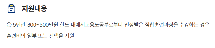 • 지원 금액: 1인당 최대 300~500만 원 훈련비 지원